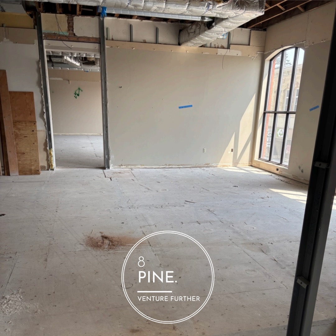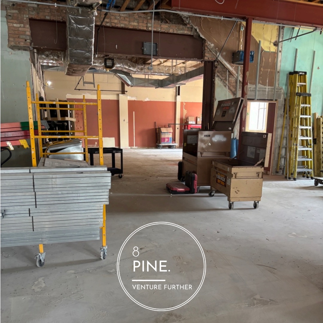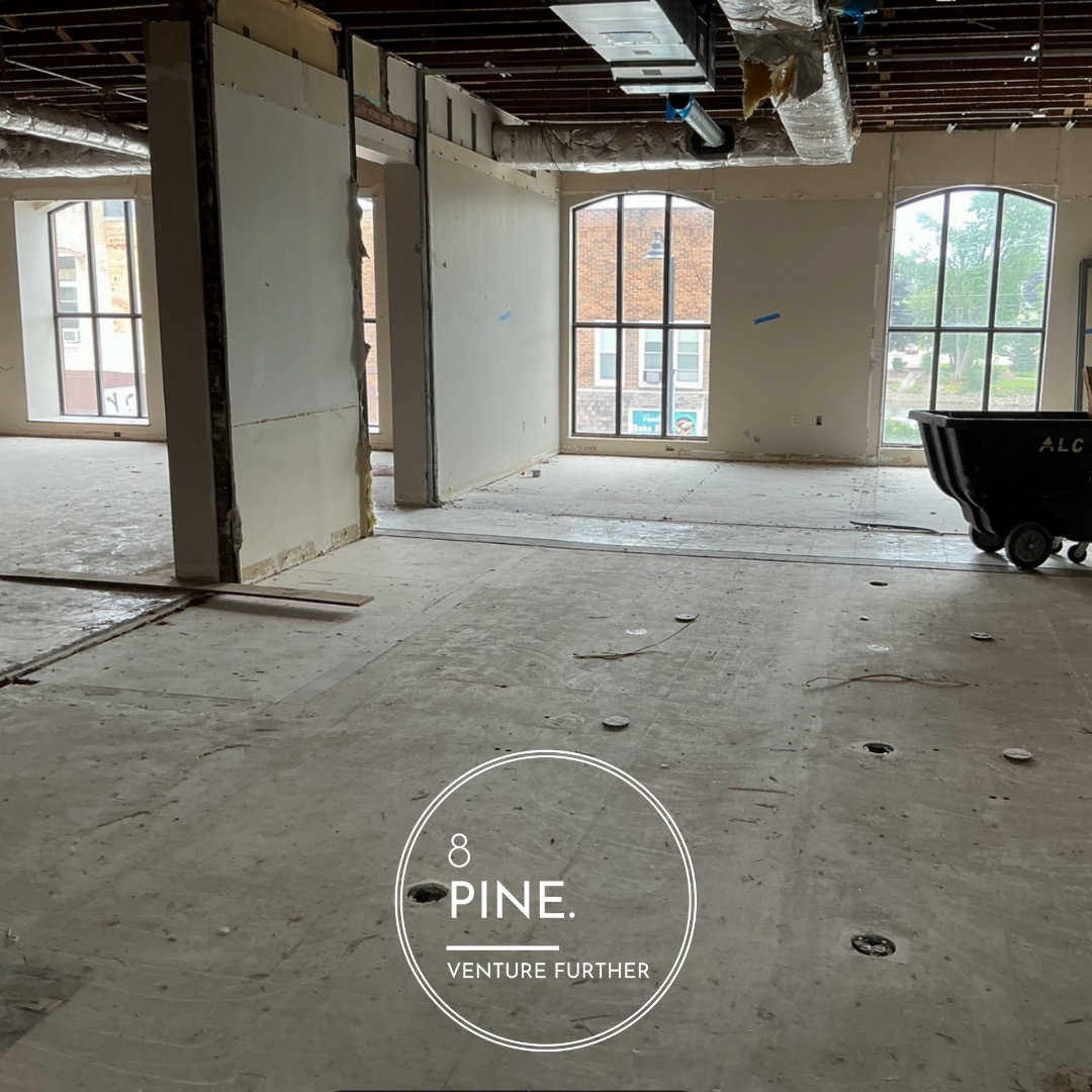 8Pine. INC has finished demo in the building and have begun to frame out the second floor. Check it out on Facebook.