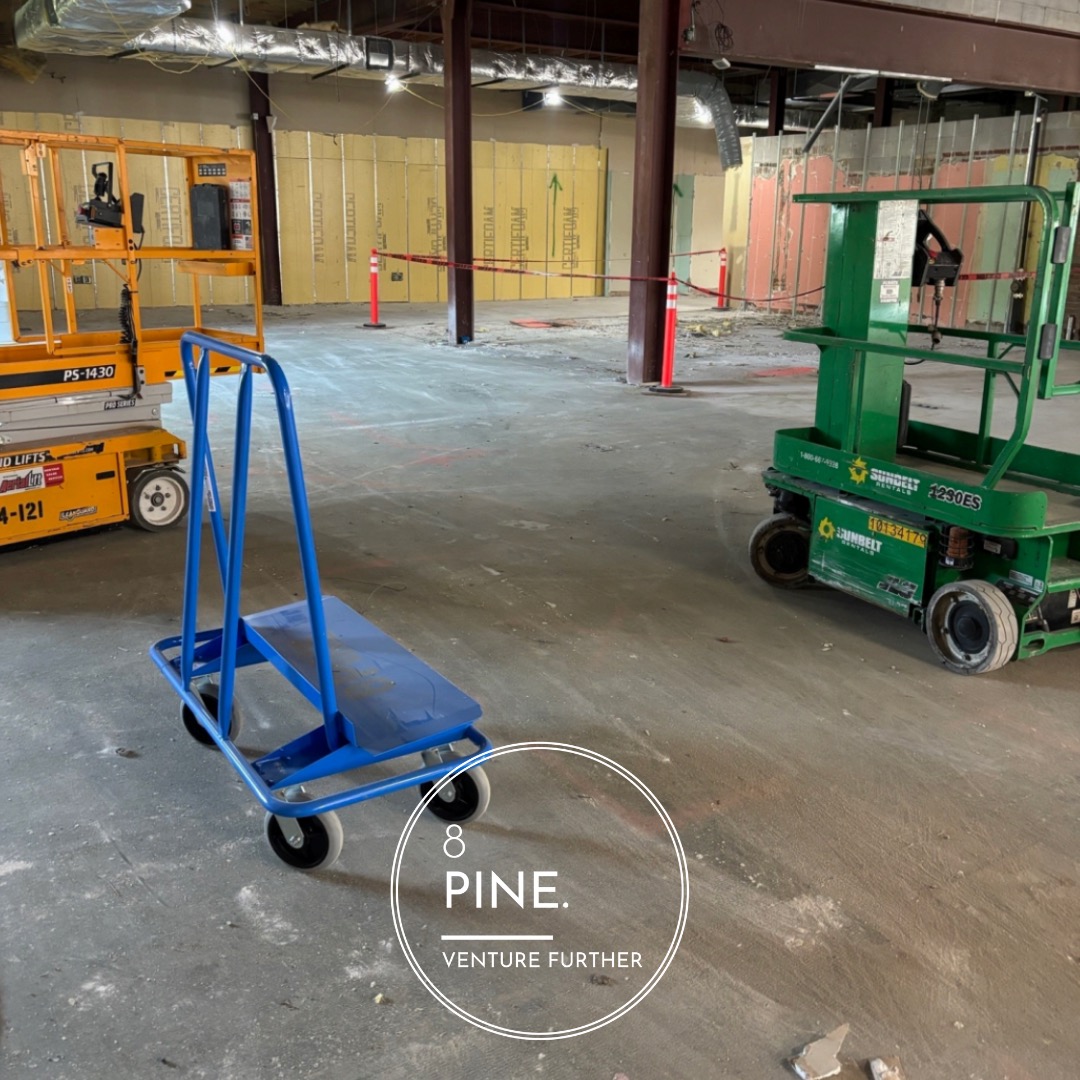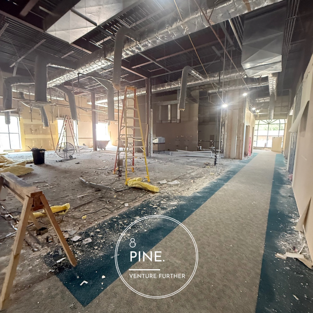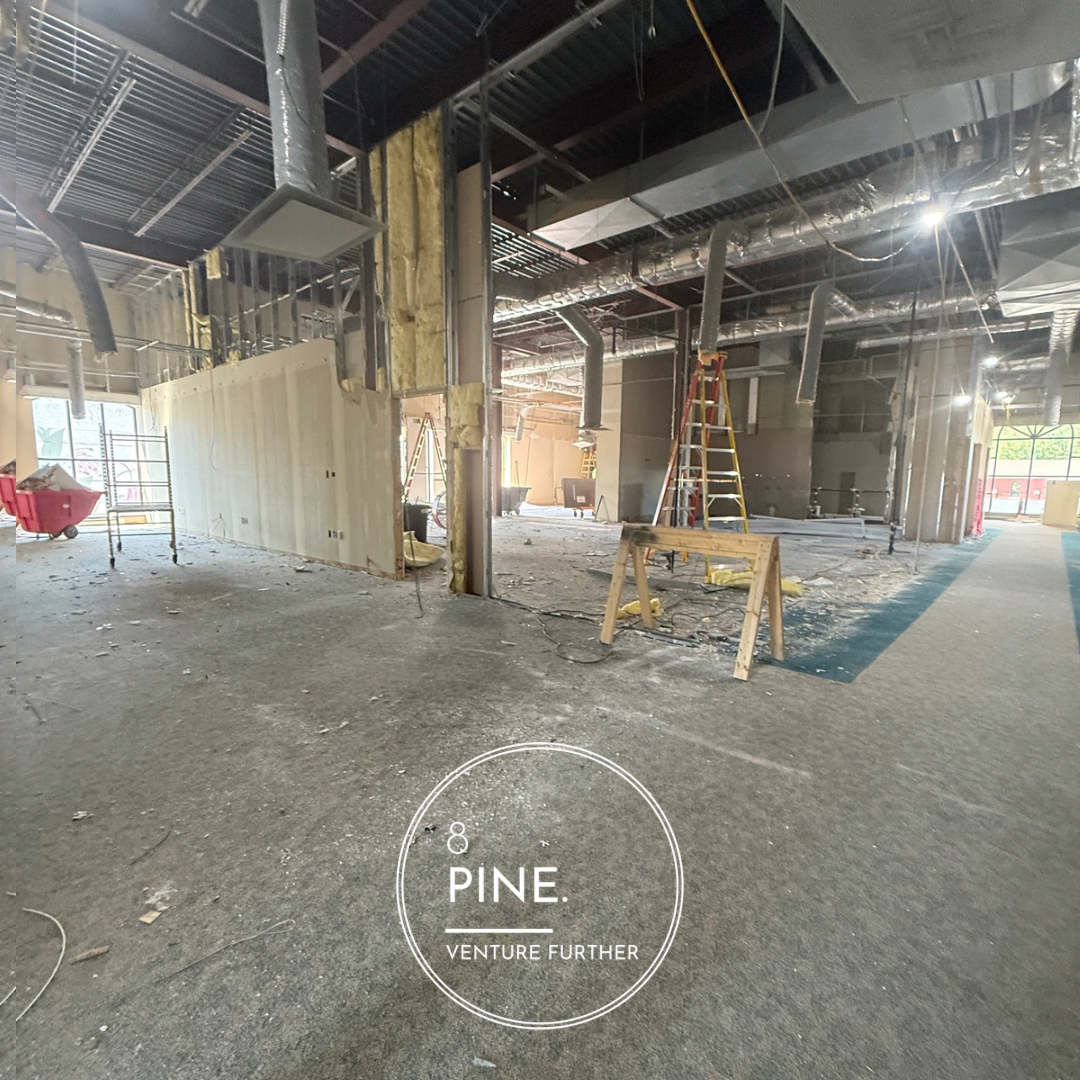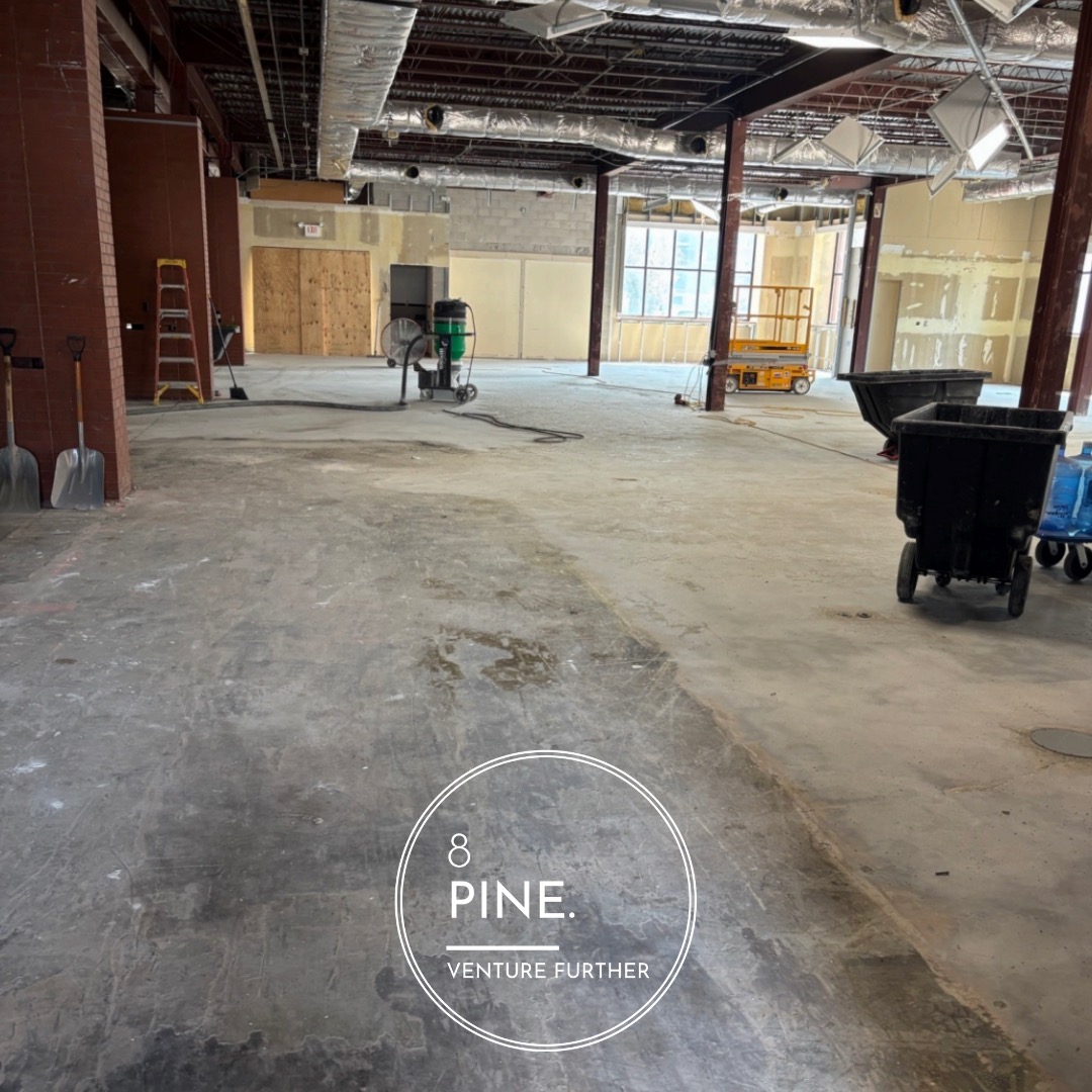 8Pine. INC has finished demo in the building and have begun to frame out the second floor. Check it out on Facebook.