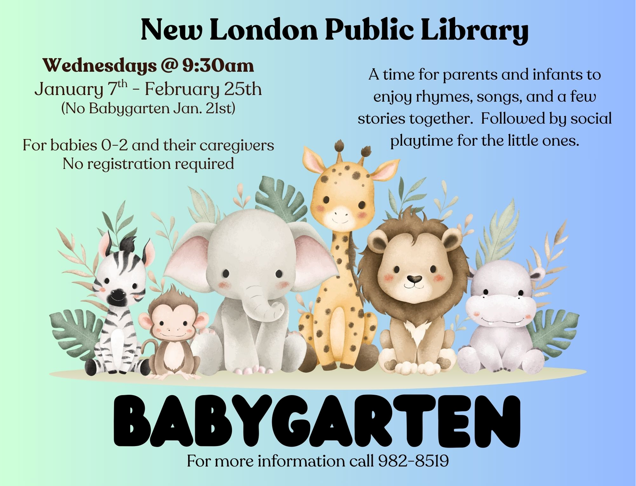 A atime for parents andinfants to enjoy rhymes, songs, and a few stories together.